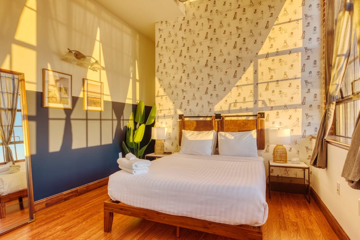 Discover a unique retreat in an updated Philadelphia warehouse adorned with vibrant graffiti murals. This artist’s dream space features colorful decor, antique wooden doors, and industrial charm, creating an inspiring atmosphere for creativity. The 1-bedroom flat offers a spacious shower, a chef’s kitchen, and cozy furnishings for a creative and comfortable stay. Overlooking lively 5th Street, it’s surrounded by bars, restaurants, and breweries, with plenty to explore nearby.