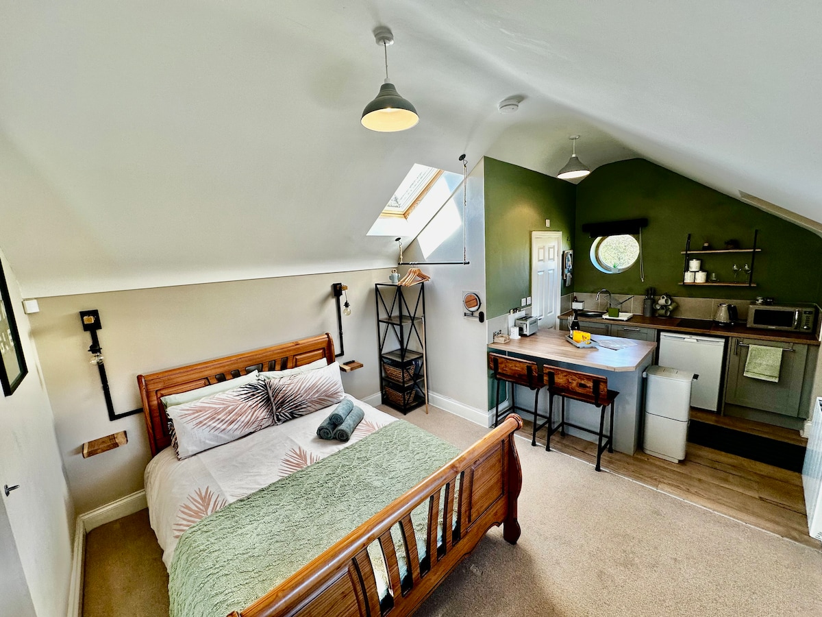 Ubicado en un pueblo bonito, con una variedad de pubs y cerca de la ciudad y el campo. Loft convertido sobre un garaje independiente, con estacionamiento y acceso privado separado y zona de jardín exclusiva. Espacio tipo estudio, con baño privado. Frente a un club de golf, podés jugar como invitado por solo 20 £ los sábados y domingos por la tarde. Es un campo hermoso y ondulado.