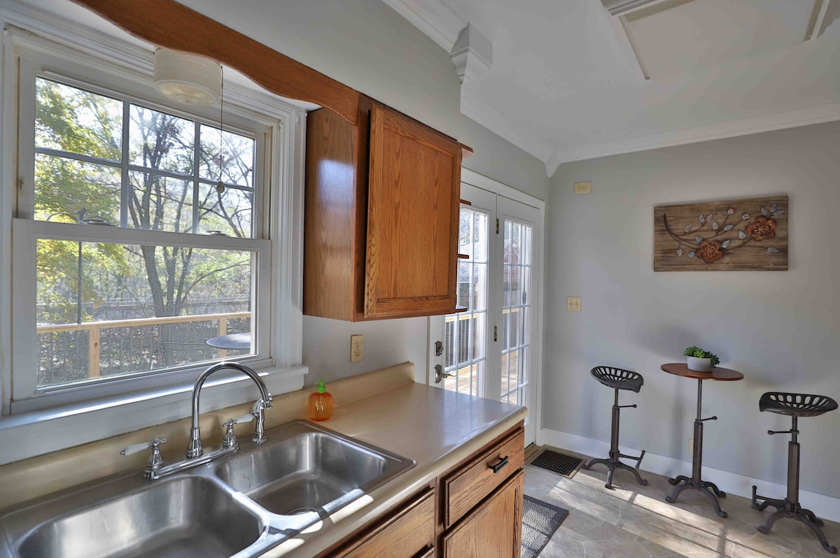 Escápate del ajetreo mientras estás rodeado de naturaleza en esta tranquila casa de campo en el bosque. Comodidad de la ciudad con un telón de fondo arbolado. La casa se encuentra en 2,5 acres, junto a 44 acres boscosos propiedad del Distrito de Parques. Disfruta de contemplar las estrellas, observar la vida silvestre, relajarte en la espaciosa terraza del segundo piso o acurrucarte junto a la chimenea interior. Un espacio moderno y bien cuidado ubicado justo al lado de la ruta 29; a 5 minutos de Peoria Heights y a 12 minutos del centro de Peoria. Licencia: STR25-00041