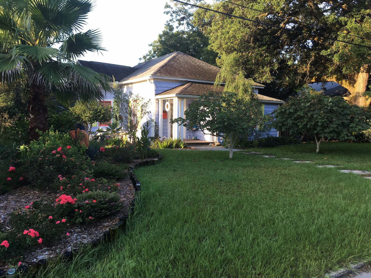 Beautiful, quiet, relaxing guesthouse (formerly Whitney’s ironwork studio). Private entrance. In historic East Hill, surrounded by peaceful, towering oak and pecan trees. The French doors provide lots of natural light and an open, airy feeling. Private patio. Quiet, historic neighborhood -- perfect for walks or bike rides. Only 1.2 miles from downtown. Within a few blocks are breakfast/coffee shops, restaurants, Publix Grocery, pubs. Easy 15 minute drive to the beach.