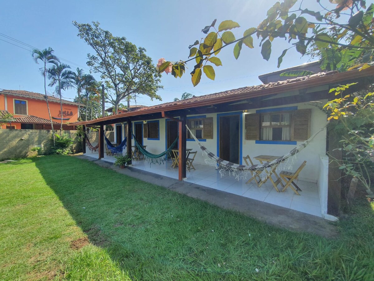 Suite en casa muy bien ubicada, con entrada independiente, con baño privado y balcón, en excelente ubicación cerca de las 3 mejores playas del sur de lhabela: P. Grande - P. Julião - P. Feiticeira, accesibles a pie. Cerca de panadería, mercados y restaurantes de playa. Suite, balcón, hamaca, mosquitera, ventilador, minibar, escritorio, TV, wifi y aire acondicionado. Suite King: para 1 pareja o 2 solteros Tengo una suite más para hasta 2 personas.: Feiticeira Suites-Ilhabela-Suite Queen