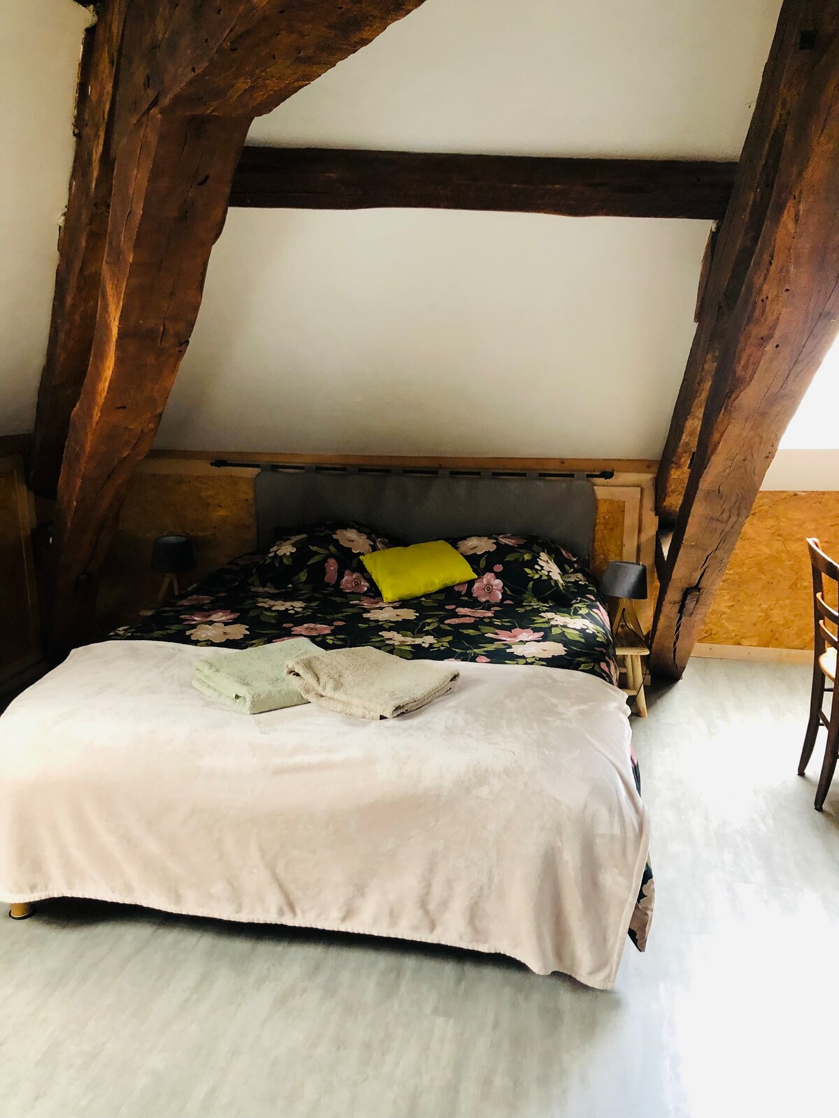 ApartamentoT2 renovado de 42 m2, que ha conservado el encanto de lo antiguo con sus vigas a la vista, su chimenea de piedra, pero con todas las comodidades modernas, desde su cocina equipada hasta su amplio dormitorio luminoso y su baño con bañera. Situado en el corazón del centro histórico de la ciudad, en una plaza donde el aparcamiento es gratuito, cerca del mercado local y de las tiendas, a 5 minutos a pie de un carril bici a orillas del río, es el lugar ideal para visitar Périgueux y sus alrededores.