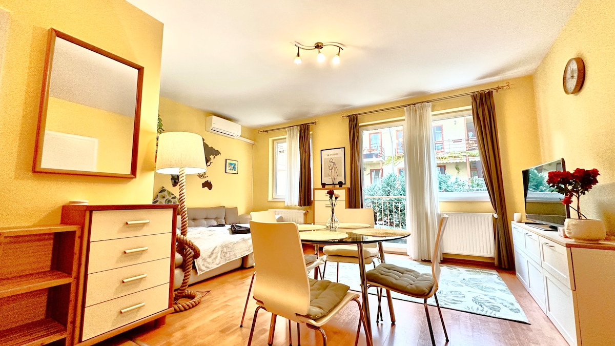 Cozy top-floor studio in the heart of Budapest, just steps from the Danube and Parliament. Overlooking a quiet inner courtyard, yet surrounded by galleries, antique shops, cafés, and bakeries. Excellent public transport makes all major attractions easily accessible, with Margaret Island within walking distance. Renovated historic building with elevator, high-speed Wi-Fi, and AC. If you value a warm welcome and complete tranquility – with self check-in – you’ll feel right at home here.