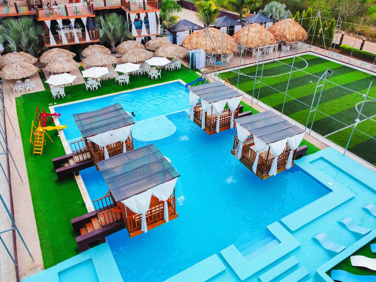 Te encantará este lugar para disfrutar de unas vacaciones espectaculares en familia o amigos! Cuenta con restaurante bar, hotel, piscina para bebés, niños y adultos, terraza con piscina, jacuzzis (solo con agua fría), juegos infantiles, cancha sintética, canopy y ranchos con hamacas. A 25 minutos de la isla de flores, 20 minutos hacia el aereopuesto mundo maya y a 67km de Tikal.