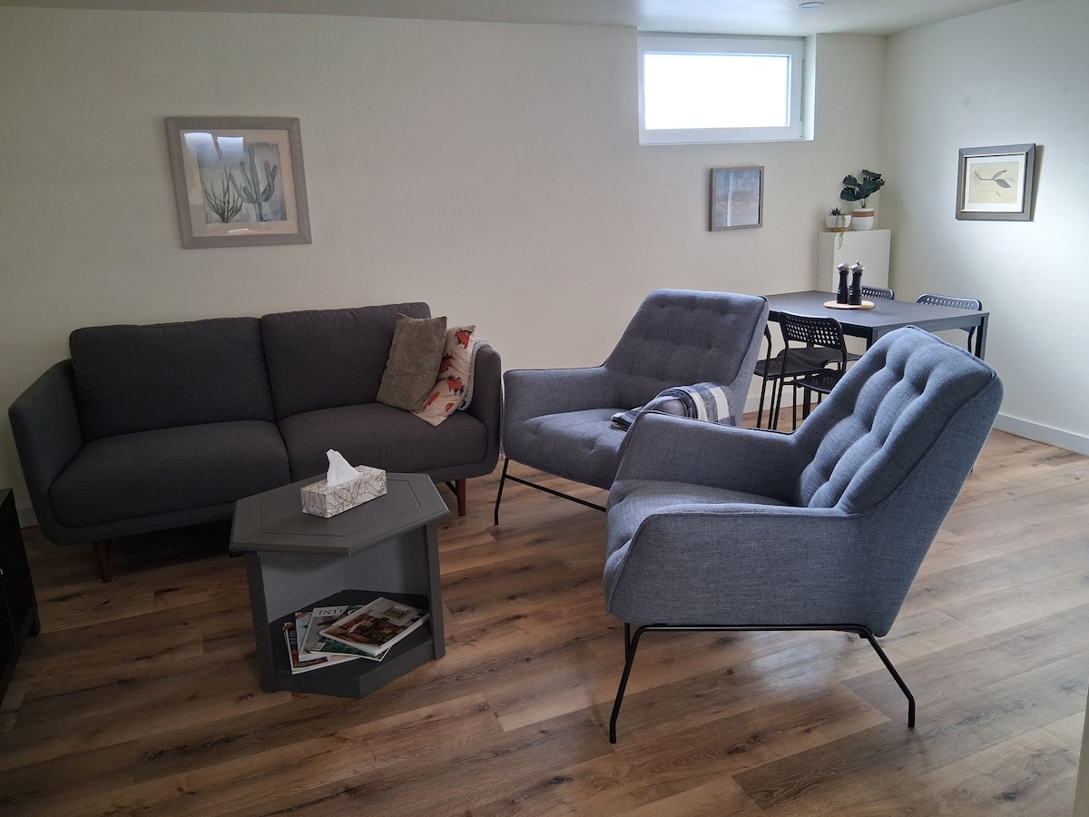 Este tranquilo y acogedor apartamento, a 5 minutos del centro de la ciudad, a 7 minutos del hospital y a 3 minutos de Trent U., cuenta con una hermosa vista de un campo de golf privado. La sala de estar totalmente amueblada con chimenea se abre a un patio con vistas al campo de golf, donde podrás relajarte y disfrutar de las vistas mientras bebes tu café por la mañana o vino por la noche. El apartamento cuenta con una cocina totalmente equipada que tiene todo lo necesario para cocinar tus propias comidas. El amplio dormitorio cuenta con una cama tamaño queen.