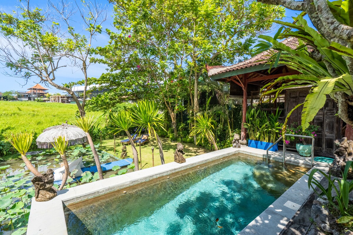 Esta villa aislada, extremadamente privada y romántica de un dormitorio está situada en una ubicación fantástica, cerca de los mejores restaurantes y clubes nocturnos y con fácil acceso a las playas y tiendas en el corazón de Seminyak. Se encuentra en uno de los mejores destinos para los turistas de la isla. Hay cafeterías y bares bulliciosos y concurridos y se trata de que esté en un lugar vibrante e increíble. Queremos informar a los huéspedes de un poco de ruido en los alrededores por la noche que generalmente termina a las 12:00 p. m.