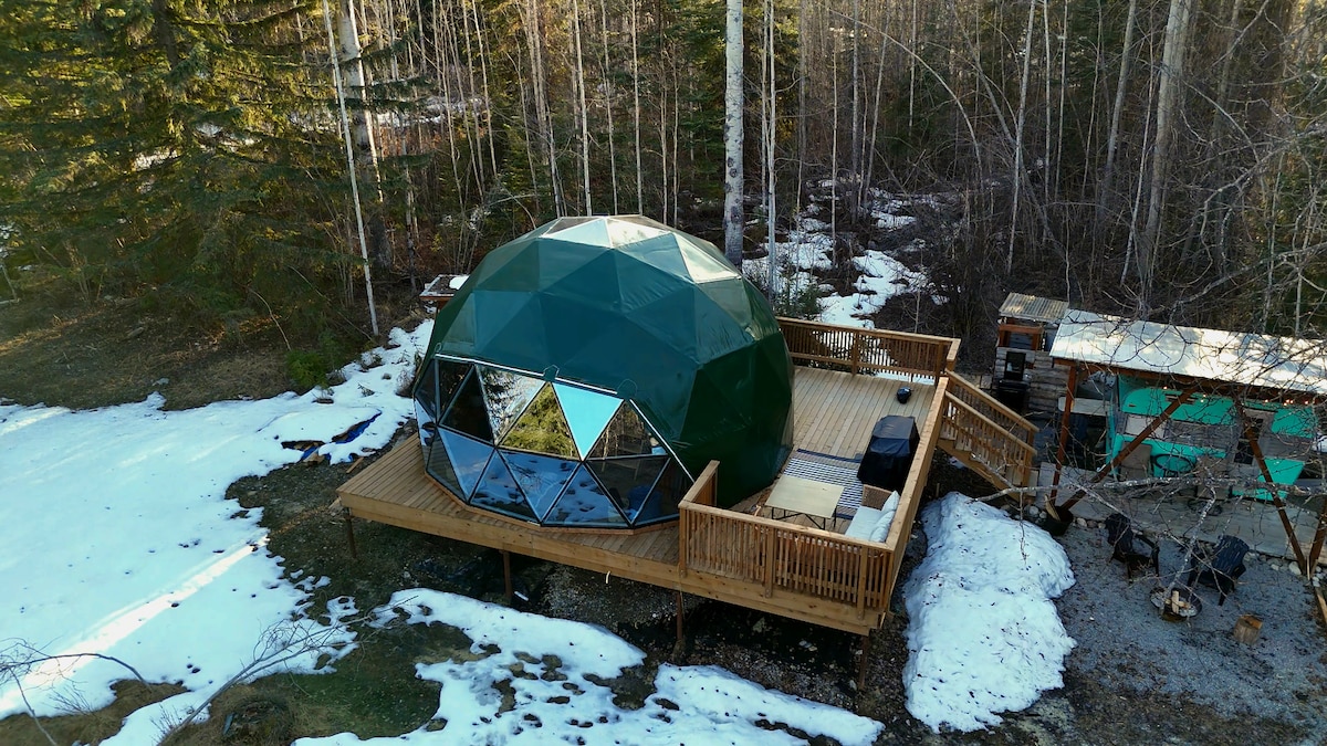 2 nights for the price of one-remaining Apr&May This unforgettable nest high above the forest floor is your opportunity to take flight. Endless trails give you access to natural views and experiences. Snowshoes provided, then spend your evening up on the deck around the tree top propane fire pit. Cook your meals in the outdoor kitchen or on the wood burning stove in the Trapper's TENT. Eat inside or out under the sky, then curl up in the luxurious queen bed to rest up and do it again tomorrow!