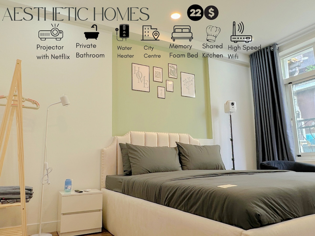 A unique 60sqm studio hidden in an alley in the heart of Saigon, offering both privacy and convenience. Located on the 2nd floor of a townhouse, right above cozy BeanThere Café on the ground floor, it’s perfect for guests who love stylish living and great coffee just steps away. Only minutes from famous attractions, shopping malls, and vibrant nightlife. Each guest enjoys 1 complimentary breakfast per night (1 food + 1 drink combo). Free housekeeping for stays over 4 nights with 1-day notice.