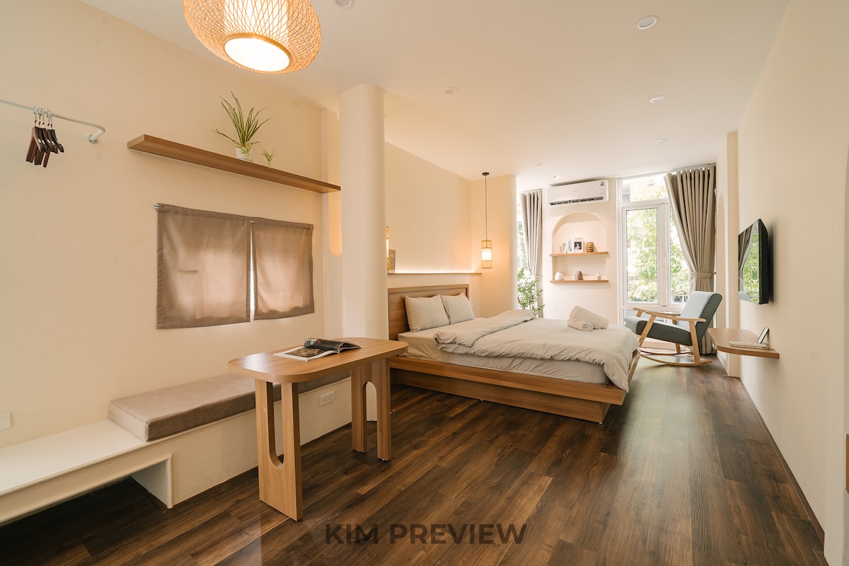 Japandi Comfort near Hoan Kiem Lake – Just a 5-minute walk from Hanoi’s iconic lake, this 40m² apartment blends Japanese minimalism with Scandinavian coziness. Enjoy a bright window with street views, a fully equipped kitchen, Netflix, and a washer-dryer. Surrounded by cafés, landmarks, and the charm of the Old Quarter, it’s the perfect retreat for travelers seeking style, comfort, and convenience.