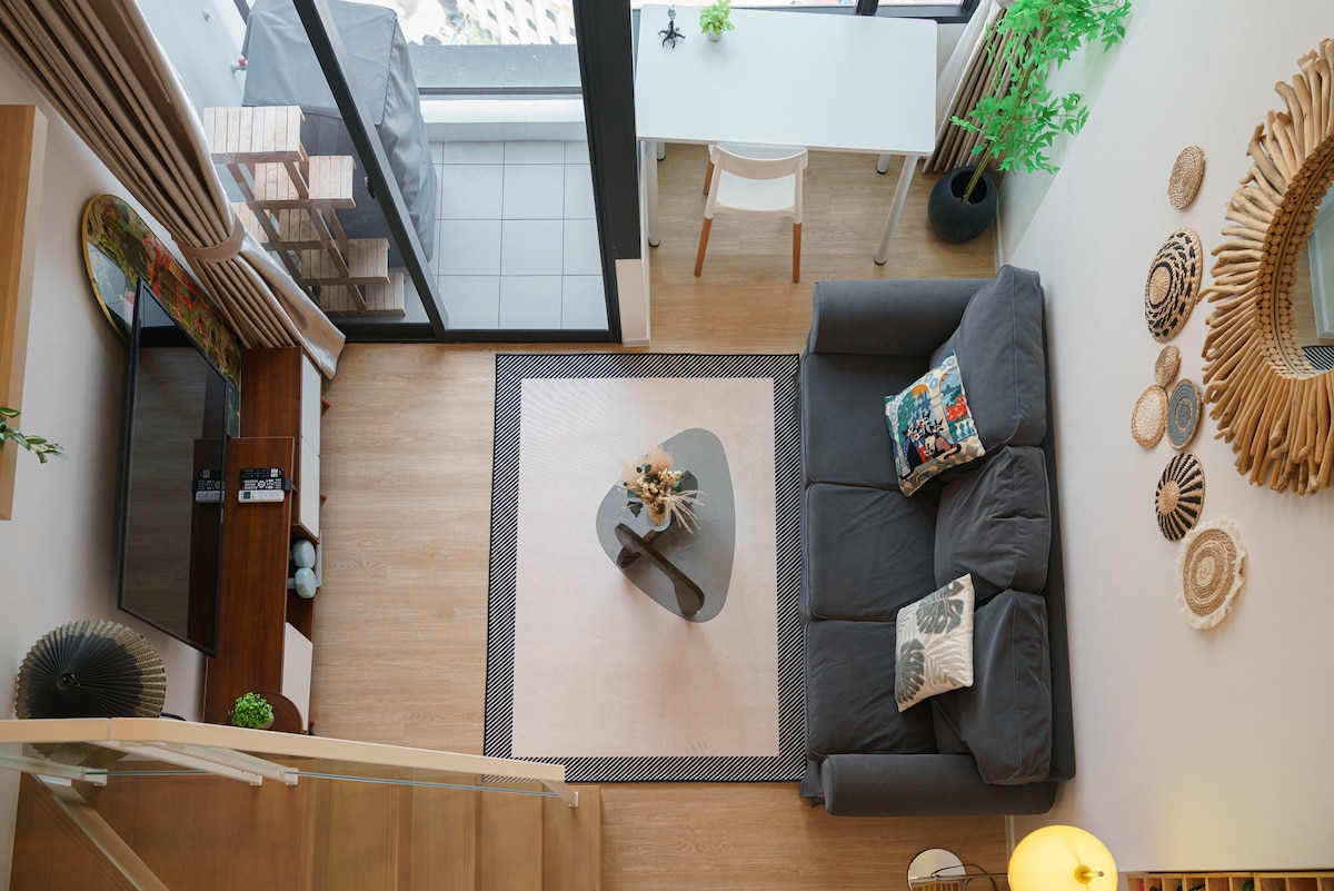 This beautiful Japanese-inspired 55 sqm unit has everything you need for a pleasant stay. The bedroom king-sized bed and personal workspace, and opens onto a spacious semi-outdoor bathroom with a wooden ofuro tub that fits two, and leads to a large walk-in closet. The living room includes a cozy sofa bed and a Ultra HD Smart TV. The kitchen is well-equipped with a microwave, range-hood, electric hob and refridgerator. The large picture window offers a view of the gardens and swimming pool.