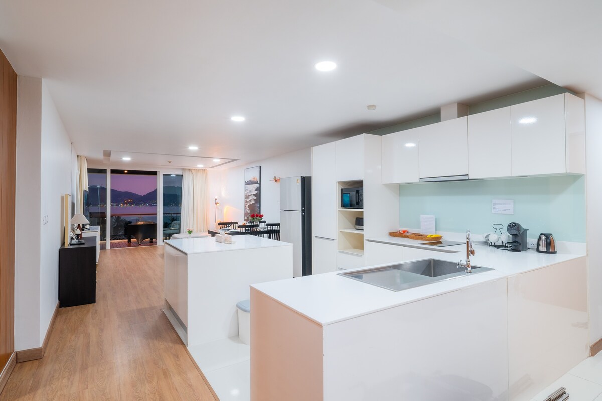 Book this condo for more than 5 nights get free airport pick-up! Free airport pick-up and drop-off for 8 nights stay! 公寓位于普吉岛游客中心芭东海滩,180度海景景观,公寓周围便利的生活配套,步行即可到达芭东海滩,便利店、夜市、餐厅、酒吧街,适合朋友,家人,情侣入住,可使用公寓配套的泳池(开放时间早6点到晚9点),健身房。公寓总面积160平方米,客厅配有65寸4k高清电视,全套厨房设备,主卧室为海景,次卧室为山景,每个房间分别配有洗手间,每个房间都有浴缸,海景阳台的戏水池是每一组客人的最爱,您可以喝家人朋友,一边泡澡聊天,一边欣赏芭东海景,日落。 公寓提供一次性拖鞋,牙膏牙刷,剃须刀,沐浴露,洗发露,入住当天有免费零食,小蛋糕,矿泉水,咖啡,茶。