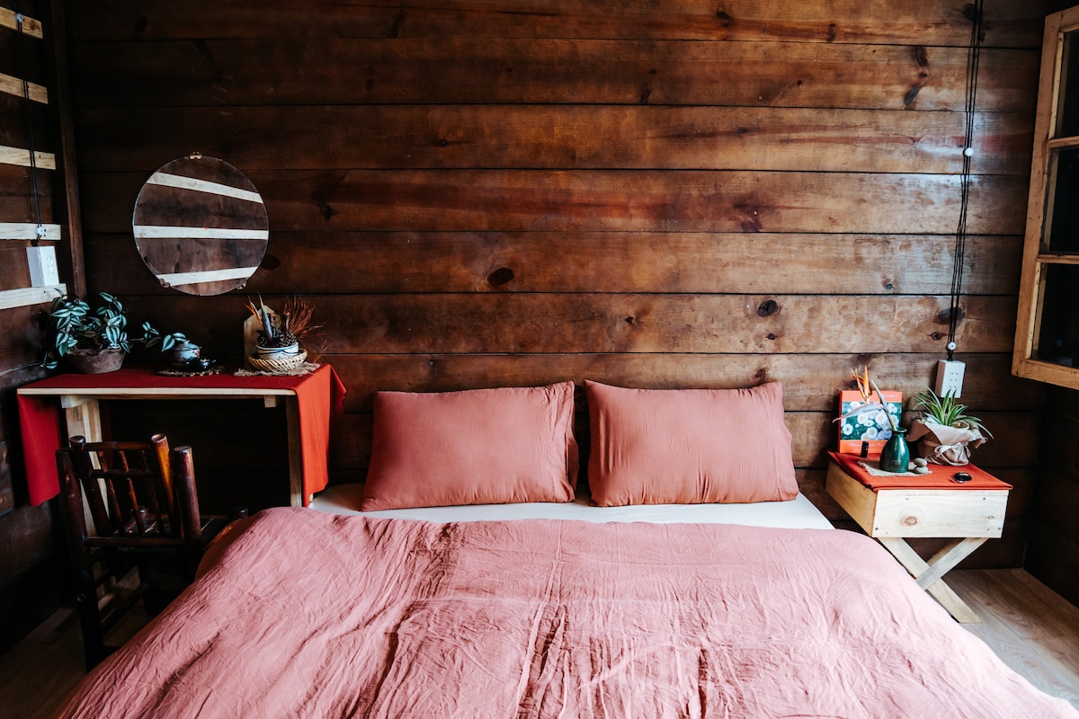 Una acogedora cabaña de madera para dos, rodeada de vegetación. Perfecto para parejas que buscan paz, naturaleza y un toque de encanto local.