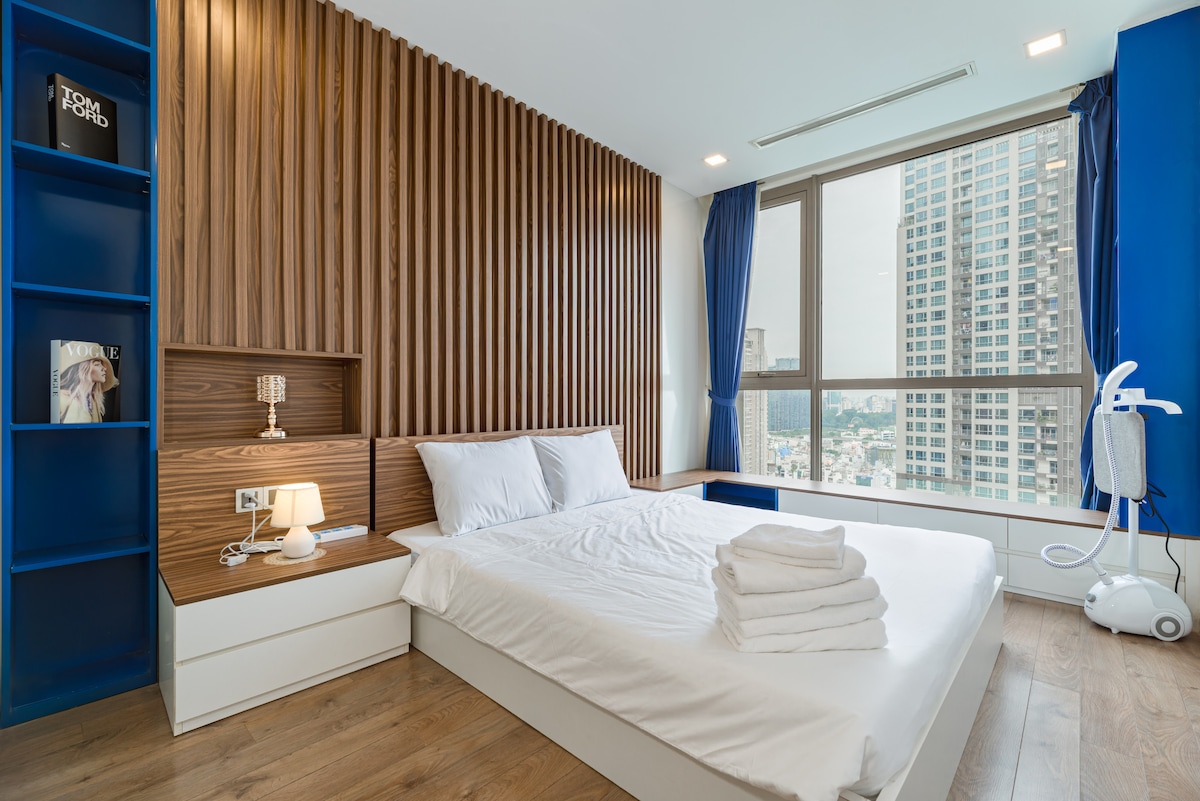 Spacious and stylishly-renovated and -decorated 2-bedroom apartment with beautiful view of surrounding neighborhood. Fully-equipped with wide range of amenities (see photos) unmatched by other apartments in the city, fast customer service until late. Staying with us is the best choice for Guests who value reliability and convenience. Located in Vinhomes Central Park, a high-end area with restaurants, cafes, a mall, and the famous Landmark 81 tower. Just 10-15 minutes to the city center.