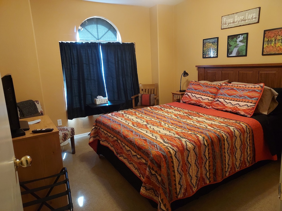 ¡Ven a visitar nuestro pequeño rancho de caballos en el noroeste de Tucson! Ubicado en las faldas de las montañas de Santa Catalina, disfrutarás de excelentes vistas y temperaturas ligeramente más frescas. Estarás lo suficientemente cerca de la ciudad para tener acceso a restaurantes, tiendas, entretenimiento, etc., pero tendrás acceso ilimitado a senderismo y ciclismo de montaña justo a la salida de nuestra puerta. * No apto para niños menores de 12 años. **Esta es una propiedad para no fumadores, lo sentimos, no hay excepciones. *Debes poder subir un pequeño tramo de escaleras*