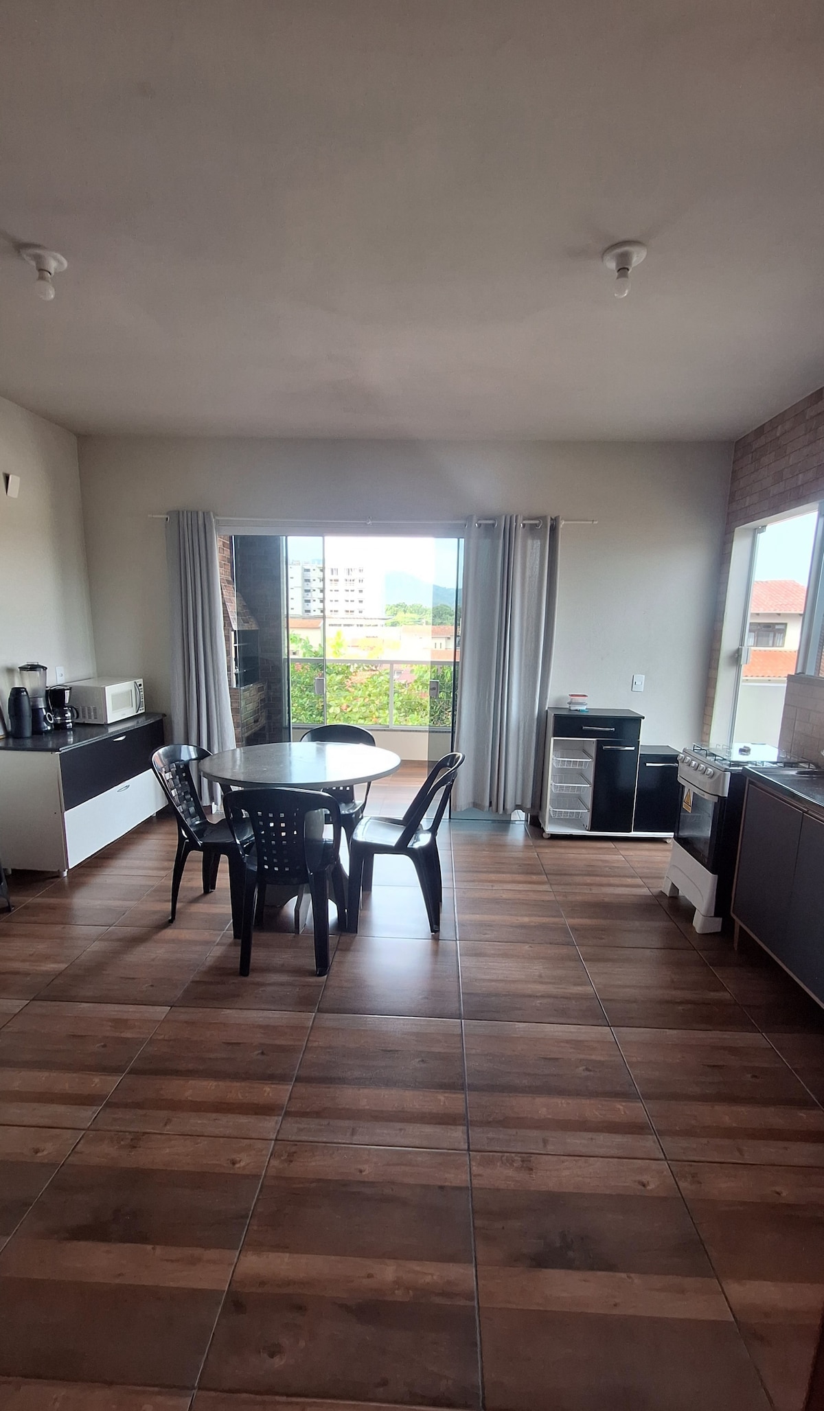 Un lugar muy agradable, habitación doble con aire acondicionado, tv, cocina y sala de estar, un baño muy amplio. Una zona con piscina con hidromasaje y sombrilla, sillas y sillones muy acogedores en el exterior, con una gran iluminación. También tiene una parrilla eléctrica, para hacer una deliciosa barbacoa. Todo está bien seguro, teniendo toda el área cerca eléctrica. Muy cerca de Beto Carrero y las playas.