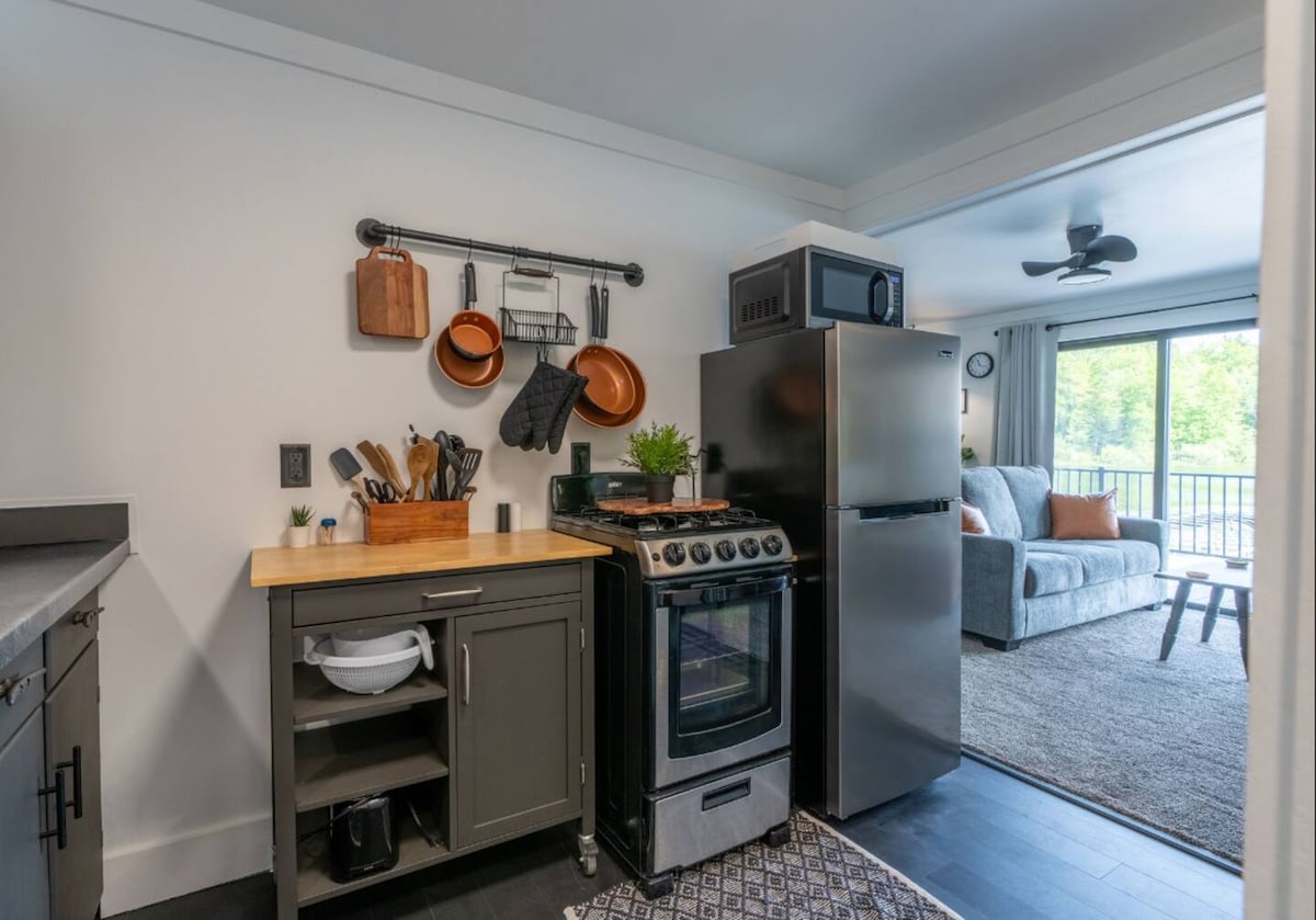 Todo lo que necesitas para relajarte y recargar energías en un espacio acogedor. Entrada privada. Esta suite es de planta abierta con una pequeña cocina americana que incluye nevera, microondas y fogones con utensilios de cocina básicos y platos. Se encuentra en la ciudad, cerca de tiendas y restaurantes. Bonito patio trasero con zona cubierta para asar a la parrilla. A poca distancia a pie del sendero North Country Trail y a 10 minutos del nuevo sendero Dragon Trail. Hay una cama tamaño queen y un sofá. Dormirán cómodamente dos huéspedes.