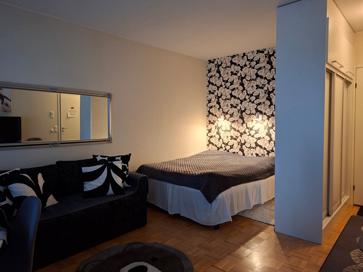Ydinkeskustan viihtyisä tilavayksiö, vain AIKUISILLE.Viilennys Ilmapumppu 🌞takaa viihyvyyden myös helteellä!Asunto on hyvin hiljainen.Kylpyhuoneen ja saunan lattialämmitys ja suuri lasitettuparveke lisää mukavuutta.160cm sängyn 2×80cm) Hyvin varusteltu keittiö kodinkoneineen,josta löytyy mm.kahvia, teetä ja kuivatu. Kadun toisella puolella ruokakauppa ja kuntosali. Veturitori, apteekki , r-kioski ,kaikki aivan kävelymatkan päässä. Rautatieasema 100m.kävelymatka.Autolla saapuville pistokepaikka