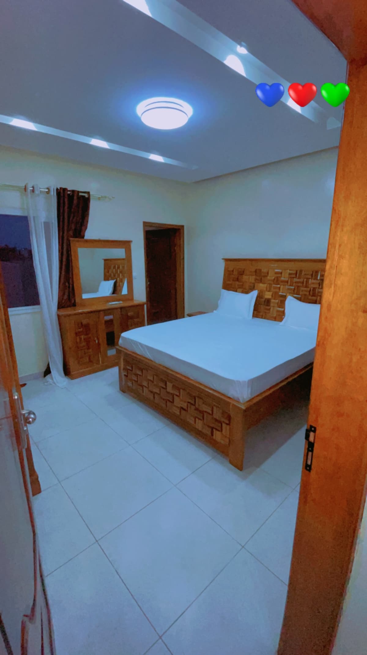 El apartamento es muy amplio y bien cuidado contiene un balcón una gran cocina de dos dormitorios dos baños y un aseo para visitantes salón comedor terraza, wifi, televisión, agua caliente aire acondicionado ropa de cama tanque de agua la limpieza se realiza diariamente, excepto los domingos, las habitaciones tienen aire acondicionado, el contador de electricidad es de prepago más allá de una semana de estancia, es su responsabilidad (5000fcfa ) por recarga .