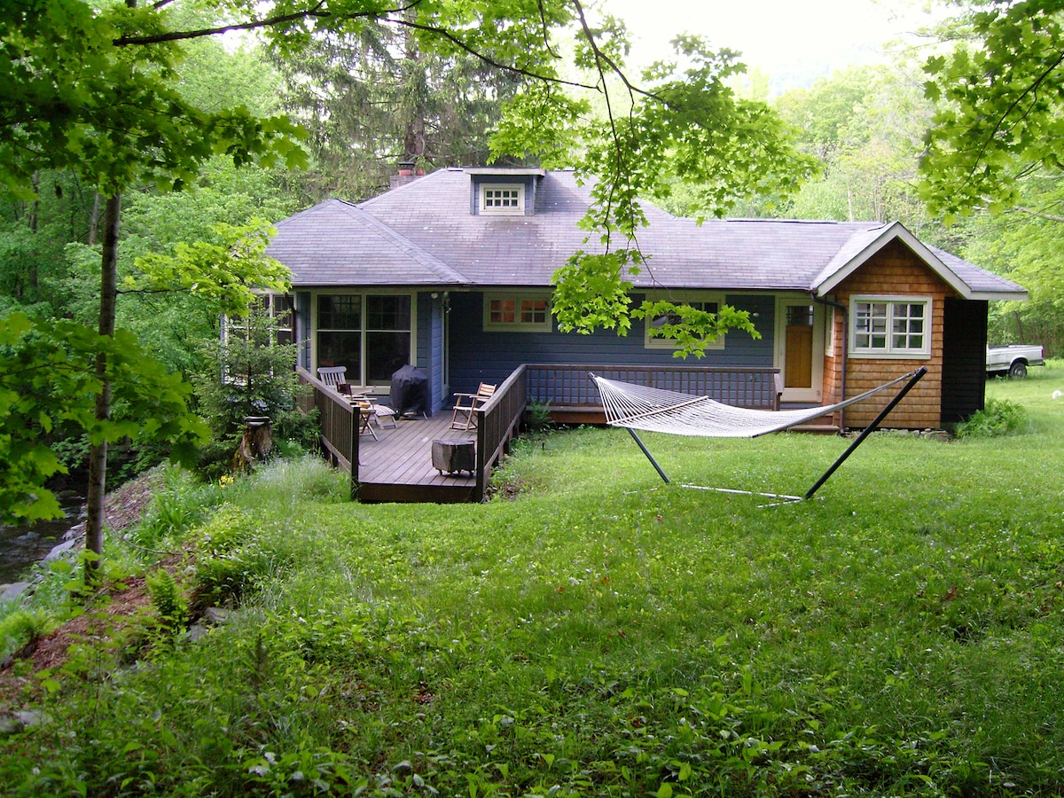 Peaceful streamside in nature near skiing & hike