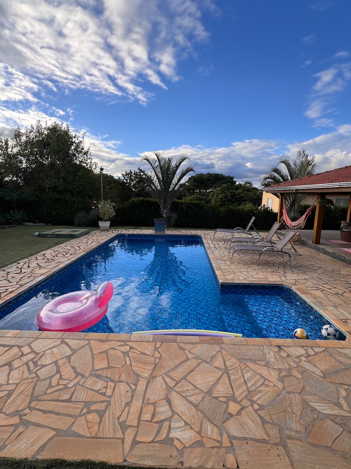 Relájate con toda la familia en este alojamiento tranquilo. Юcara se encuentra en la ciudad de Pinhalzinho, un lugar tranquilo en medio de mucha naturaleza. Todo el acceso es asfaltado y el mercado está a 300 metros de la casa. La casa tiene 3 suites, la principal con vistas al lago que pertenece a la residencia. El amanecer es espléndido y las aves aportan todo el encanto al sitio. La piscina, el fuego en el piso y la barbacoa proporcionan comodidad y diversión para todos.