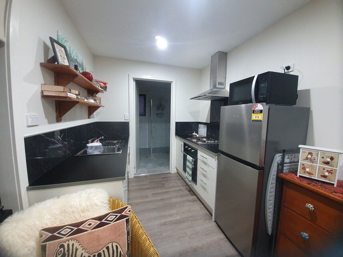 A couples hideaway, this stylish tiny home with loft bedroom is the perfect getaway. Whether it’s riding with your favourite person, or walking together to the floating sauna… this space has everything you need, & nothing you don’t! Pull up a chair outside & watch the sun go down while you cook up a storm on the BBQ, or cosy up on the couch & watch your favourite movie. A 5 minute walk to everything… coffee shops, a river walk, or to ride. This tiny home is the perfect starting place.