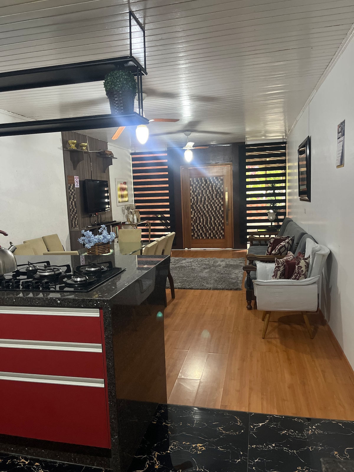 Acogedora casa con 2 dormitorios, 1 dormitorio con una cama doble, 1 dormitorio con una cama individual y 1 sofá cama retráctil, baño con ducha, sala de estar, cocina, garaje, lavandería, parrilla, Wi-Fi, TV con Netflix, YouTube, etc. La casa está bien equipada con varios artículos para tu comodidad y la de tu familia. La casa está cerca de varios mercados comerciales, una estación de servicio, farmacia y hospitales, y está cerca de los bosques de pinos de Curitiba, São José dos Pinhais, Quatro Barras, PR, y Campina Grande do Sul, PR.