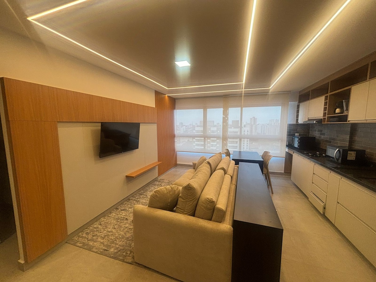¡Departamento para personas exigentes! Internet Piscina Sala de máquinas Coworking Cochera Amplio salón con aire acondicionado, TV inteligente y sofá cama. Habitación con aire acondicionado, cama queen, armario y balcón Cocina completa, con heladera, cocina con campana extractora, horno eléctrico, microondas, licuadora, cafetera, sandwichera eléctrica, vasos, tazones, platos, cubiertos, juego de ollas y todos los utensilios necesarios. El departamento tiene una mesa de comedor y un espacio de oficina en casa. Baño con ducha a ras del suelo