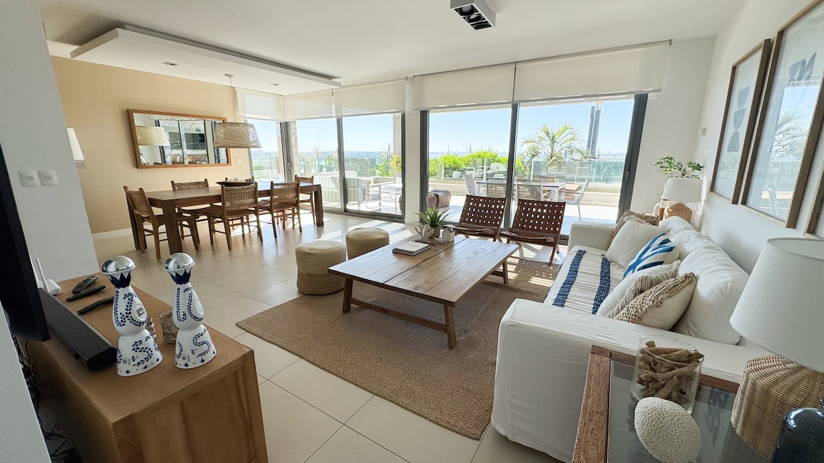 Espectacular apartamento en Punta Ballena en primera linea del mar. Al lado de Casa Pueblo, casa y Museo del artista Carlos Páez Vilaró . Cuenta con 2 dormitorios en suite, cocina y comedor integrados, living y una amplia terraza. Aire acondicionado y persianas automáticas. Sábanas, toallas, sillas de playa y sombrilla incluidas. Servicio de mucama opcional con costo extra. Bicicletas opcionales con costo extra.