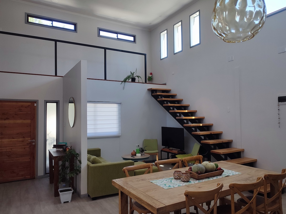Es una casa estilo moderno muy acogedora amoblada completamente, ubicada en el mejor sector de Pisco Elqui, con vista privilegiada, está cerca del Río Claro es un lugar tranquilo que invita al relajo y la desconexión. A 4km de la plaza de Pisco Elqui, cercana de restaurantes , almacenes y lugares turísticos (cabalgatas,treking, masajes, yoga). Es importante señalar que los espacios están diseñados para familias o grupo de amigos