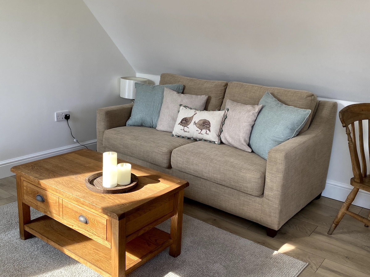 A country hideout above our detached oak framed barn. Stylishly furnished in a rustic luxury theme ensuring this retreat ticks all boxes to make your stay comfortable & cosy! Very spacious and an ideal place to come and relax for a romantic countryside break. Fantastic pub in the neighbouring village that serves food most days (please check) and there is a very well equipped kitchen should you like to cook for yourselves. Easy access to Oxfordshire best countryside walks too.