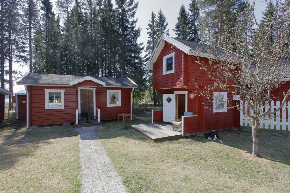 ¡Alojamiento respetuoso con el medio ambiente! Sunpanels en el techo. Te ofrecemos una sauna, algunos equipos de gimnasio y cerca también hay un lago con chimenea. Puedes ir a pescar o pedir prestado nuestro pequeño barco. Tendrás tu propia casa completa con ducha, inodoro y una pequeña cocina. Nuestra casa está a 30 minutos de Luleå (con auto), pero hay autobuses varias veces al día. ¡NO se admiten mascotas! Debido a problemas alérgicos. También es perfecta para el invierno, la casa está completamente aislada.