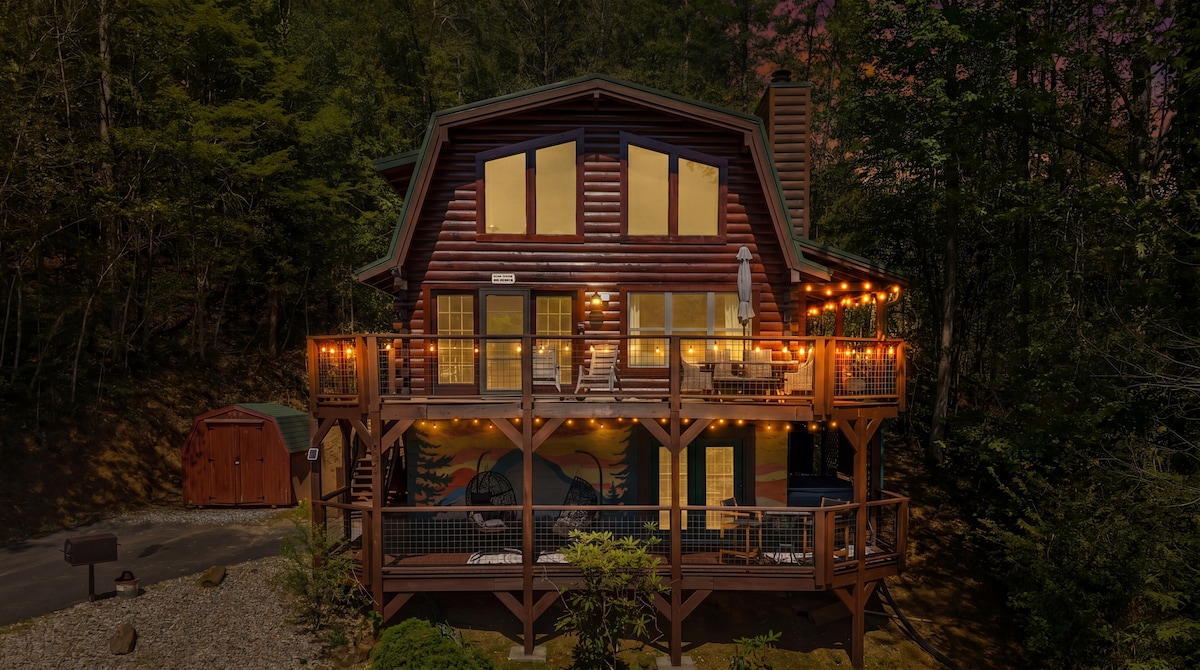 🌟2000 pies cuadrados y 2 terrazas grandes Jacuzzi 🌟aislado 🌟Sala de juegos 🌟2 acres privados 🌟Wifi rápido Parrilla con🌟 fogata y fogones Disfruta de privacidad mientras estás convenientemente ubicado para llegar a grandes atracciones: A 14,5 km del centro de Gatlinburg. *5 millas-Rocky Top Sports World 16 kilómetros: Parque Nacional Smoky Mountain 24 km-Dollywood, Pigeon Forge * 3 pisos: hay escaleras