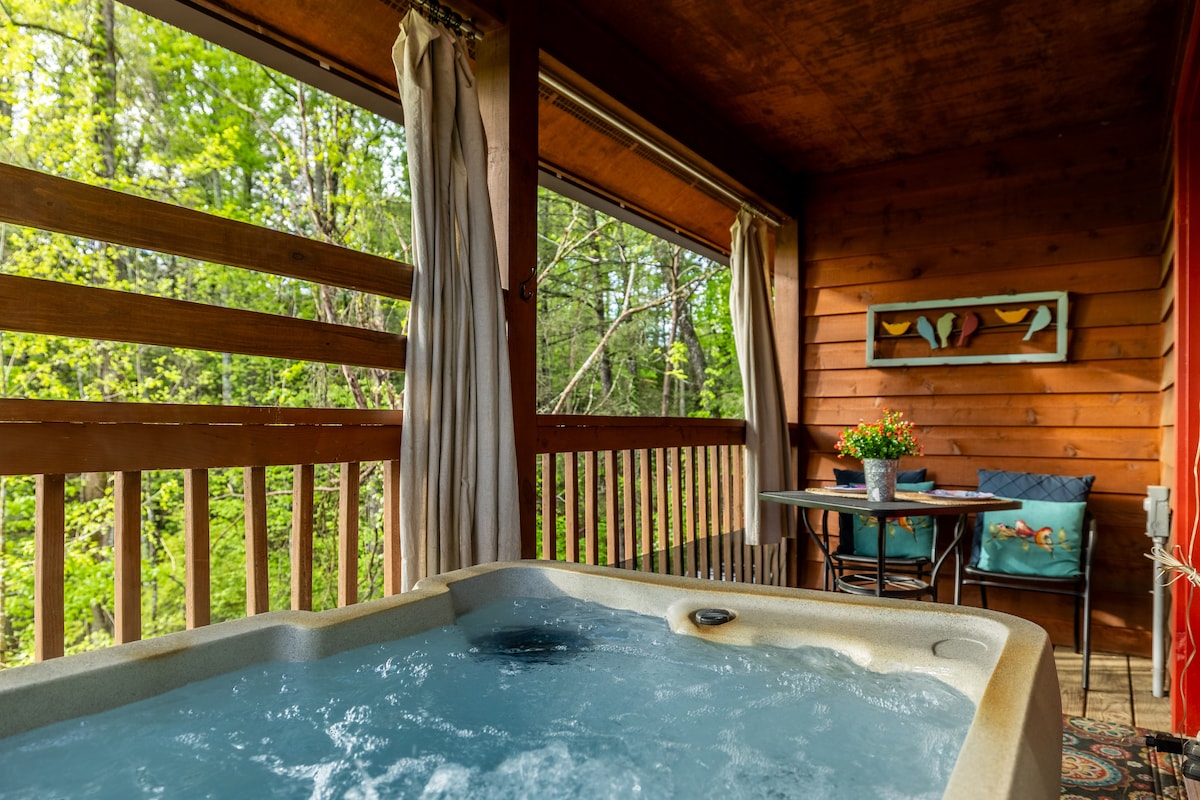Cabaña romántica en Gatlinburg con bañera de hidromasaje y jacuzzi