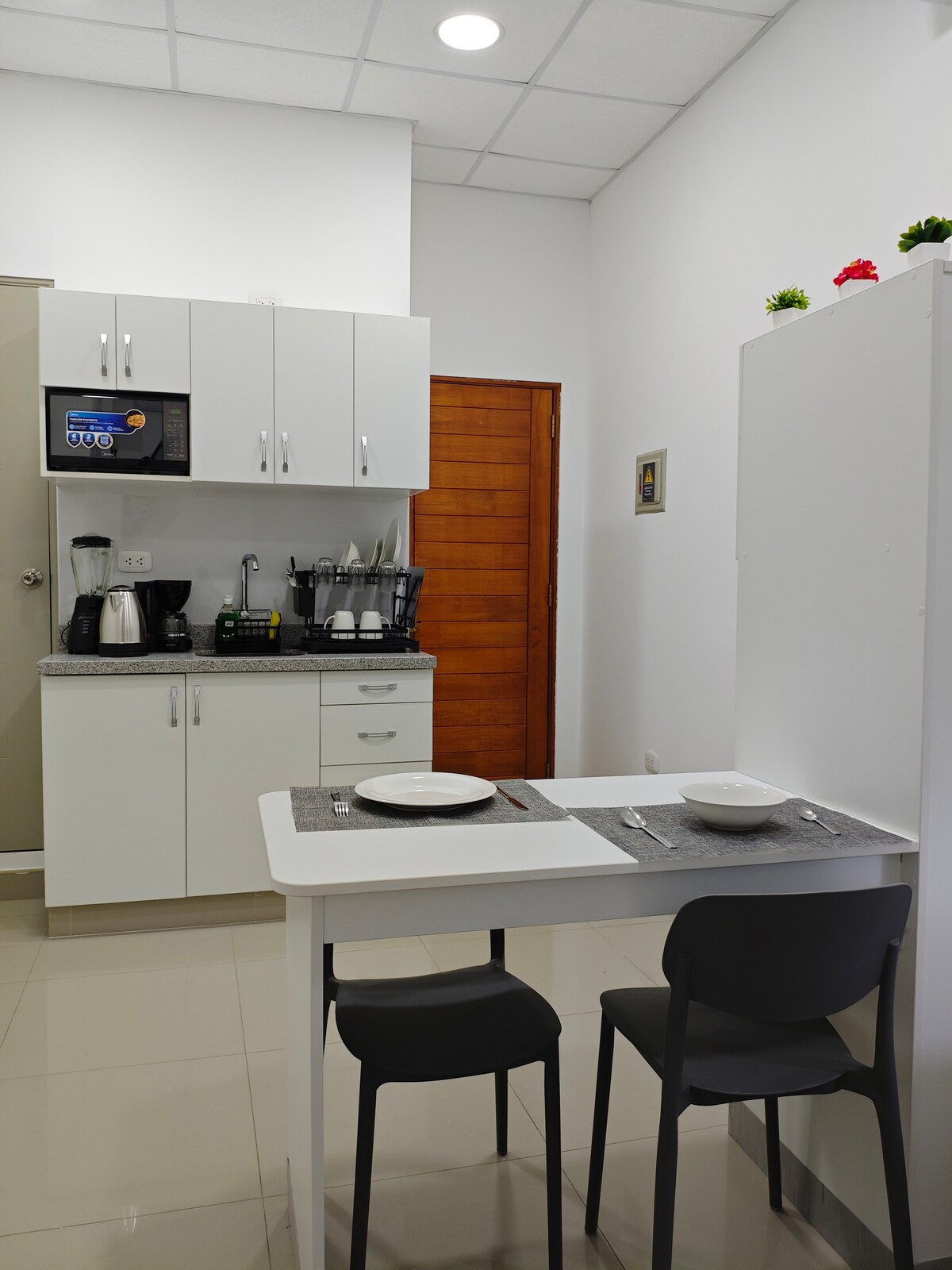 Alojamiento fresco, tranquilo, moderno y céntrico en Piura. Con aire acondicionado Habitación en segundo piso con entrada independiente, puerta a la calle. Tiene un box tarima, ropero, plancha, lámpara, escritorio y silla. Google TV, Kitchen con lavador, microondas, frigobar, licuadora,cafetera, hervidor, vajilla y cubiertos. Baño completo exclusivo con terma digital y secadora de pelo. Wifi exclusiva. Lavadora y secadora de ropa (costo adicional) Todas las ventanas tienen malla antimosquitos.