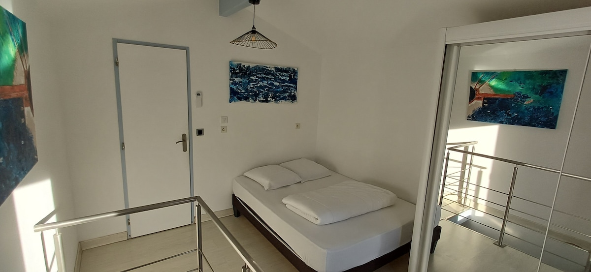 Royan, quartier Pontaillac, 400m de la Plage (non vue mer) proche du lac de la métairie, du Casino, du musé, des bars restaurants et des commerces de proximité, 1km du Super U Climatisation RDC, deux pièces 47m2 habitables, à l'étage chambre salle d'eau wc, au rdc salon cuisine, tout équipé, exposition plein sud idéal pour séjour en couple ou en famille (canapé convertible) NOTA prévoir draps de lit (protection couette, oreillers, matelas) et serviettes de bain pour votre séjour