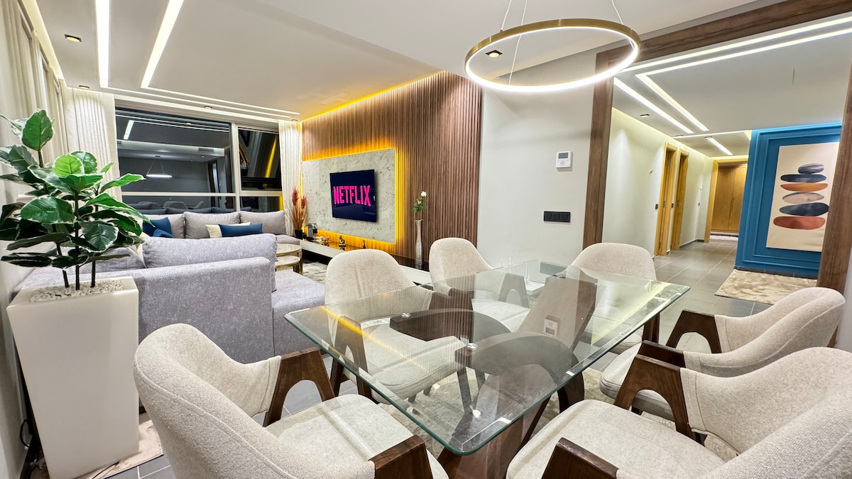 Disfrutá de la comodidad de 5 estrellas en esta elegante suite de 3 dormitorios en el último piso en el corazón de Tánger 🌊 Impresionantes vistas a la ciudad y al mar, diseño estilo Hilton y espacio para hasta 6 huéspedes. Disfrutá de aire acondicionado central, una cocina totalmente equipada, wifi rápido y estacionamiento privado en el lugar 🅿️ para una estadía sin estrés. A pocos pasos del centro comercial de Tánger, la playa y la estación de TGV🚆, ideal para escapadas familiares, escapadas románticas, viajes de negocios o escapadas de fin de semana explorando el vibrante norte de Marruecos y su costa.