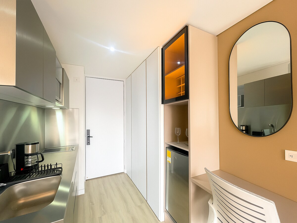 Recently renovated charming Studio. This place is strategically located: close to markets, museums, San Martin Mall, Monserrate, La Candelaria, La Plaza del Perseverancia, la Calle Bonita, National Park International Center (Financial zone), and countless restaurants, bars, and cultural activities that will make your visit to the city, an unforgettable experience. The building has a gym, coworking, pool area, and BBQ terrace on the top floor 360 View.