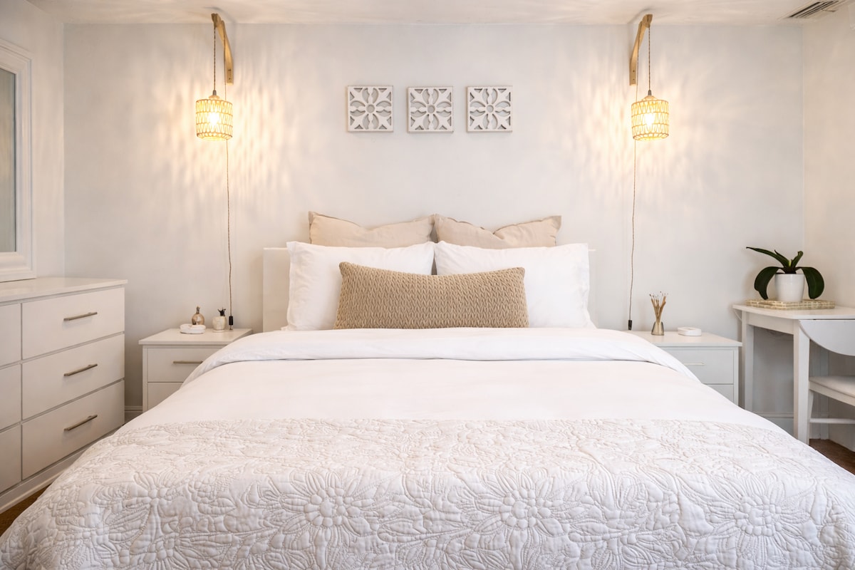 A SUNRISE SUNSET" Located in Sunny Sunrise Florida. This Expertly appointed room/suite dubbed the "Sunrise Sunset" flaunts a private adjoining full bath with an inlay tile stand up shower fit for a king and queen Specifically designed with the Airbnb guest in mind, this room sports a luxurious queen bed perfect for sleeping 2. This nights sleep will have you falling into a cloud of comfort as you peacefully sleep a top carefully selected top of the line linens and bedding.