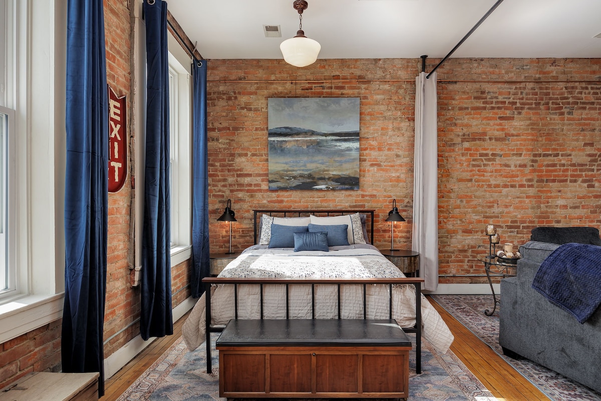 Contempla el impecable ayuntamiento con la Estatua de la Libertad y una escultura de bronce que marca la ciudad donde el Honesto Abe visitó justo antes de anunciar su candidatura a la presidencia. Los ladrillos originales y la madera de esta casa única de 170 años han sobrevivido al paso del tiempo. Sube en ascensor (o por las escaleras) hasta el segundo piso. Situado en el corazón del centro histórico de Leavenworth, la primera ciudad de Kansas. A pocas manzanas hay varias cafeterías, panaderías, boutiques y bares. Ubicado a solo 10 millas de la galardonada ciudad turística de Weston, que tiene muchas cervecerías, bodegas y rutas de senderismo. ¡No encontrarás esto en ningún otro lugar! Suelos originales y amplios pisos de madera que se colocaron hace 165 años y paredes de ladrillo originales que han resistido el paso del tiempo. Una vista desde nueve ventanas que dan a nuestro prístino ayuntamiento con la estatua de la libertad y la estatua de Abraham Lincoln. (¡Lincoln anunció su candidatura a la presidencia allí mismo en Leavenworth!) ¡Y pensar que lo más probable es que cruzara la calle y entrara en nuestro edificio, ya que era un salón en ese momento! Entrarás en nuestro loft desde la calle mediante un teclado y hay una pequeña habitación que conduce a nuestro nuevo ascensor (gran puerta de acero) para llevarte al segundo piso. Las instrucciones para el ascensor están en la pared. Muy fácil, solo cierra siempre la puerta blanca de acordeón del ascensor en caso de que tu grupo lo llame desde otro piso. Tu grupo es la única persona que tiene acceso a este ascensor. La hora de llegada es entre las 16:00 y las 19:00 horas. Envíanos un mensaje de texto si no es en ese plazo. La salida es a las 11:00 h. Una vez más, ¡envíanos un mensaje de texto si necesitas más tiempo! Mac y Stacy siempre están a solo un mensaje de distancia y pueden estar allí en 10 minutos. #913-651-7798. ¡Envíanos un mensaje de texto si tienes alguna pregunta! Sube en un ascensor personalizado al espacio abierto pero acogedor sobre la boutique de velas y regalos del anfitrión. El apartamento es una base estupenda para explorar Kansas City, Fort Leavenworth, la sede del condado y la pintoresca Weston, Missouri. Tiendas, restaurantes, cafeterías y bares están a solo unos pasos. Hay un gran aparcamiento detrás del edificio en la calle 5. Televisor de 65 pulgadas, pero no tenemos cable. Hay un reproductor de DVD y puedes conectar tu teléfono al televisor para ver tus vídeos, Hulu, etc. ¡Eso es lo que hacemos, y usamos los datos de nuestro teléfono u ordenador para mostrarlos en la pantalla del televisor!