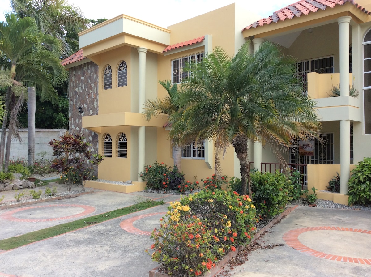 Este apartamento de un dormitorio es un refugio perfecto para solteros o una pareja para relajarse en la República Dominicana. Situado a solo 5 minutos a pie de la hermosa playa de Bávaro, donde puedes disfrutar de la cocina dominicana en un restaurante de playa, ir a pescar o disfrutar de algunos deportes acuáticos, o simplemente relajarte en la playa. El apartamento cuenta con todos tus elementos básicos como sábanas, toallas de playa, cocina bien equipada, lavadora, TV por cable e Internet. El apartamento está a pocos pasos de la tienda de comestibles y la farmacia.