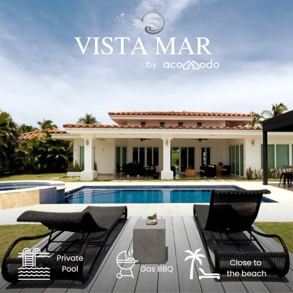Espectacular villa Privada exclusiva a solo 3 minutos de la playa en auto, súper espaciosa, ideal para compartir en familia, con amigos o reuniones corporativas. La propiedad está llena de sorpresas y con muchas cosas por hacer incluyendo su piscina, jacuzzi, mesa de billar, mesa de ping pong, mesa de domino, hamacas, amplias áreas verdes, BBQ a gas, variedad de juegos de mesa y una cocina totalmente equipada.