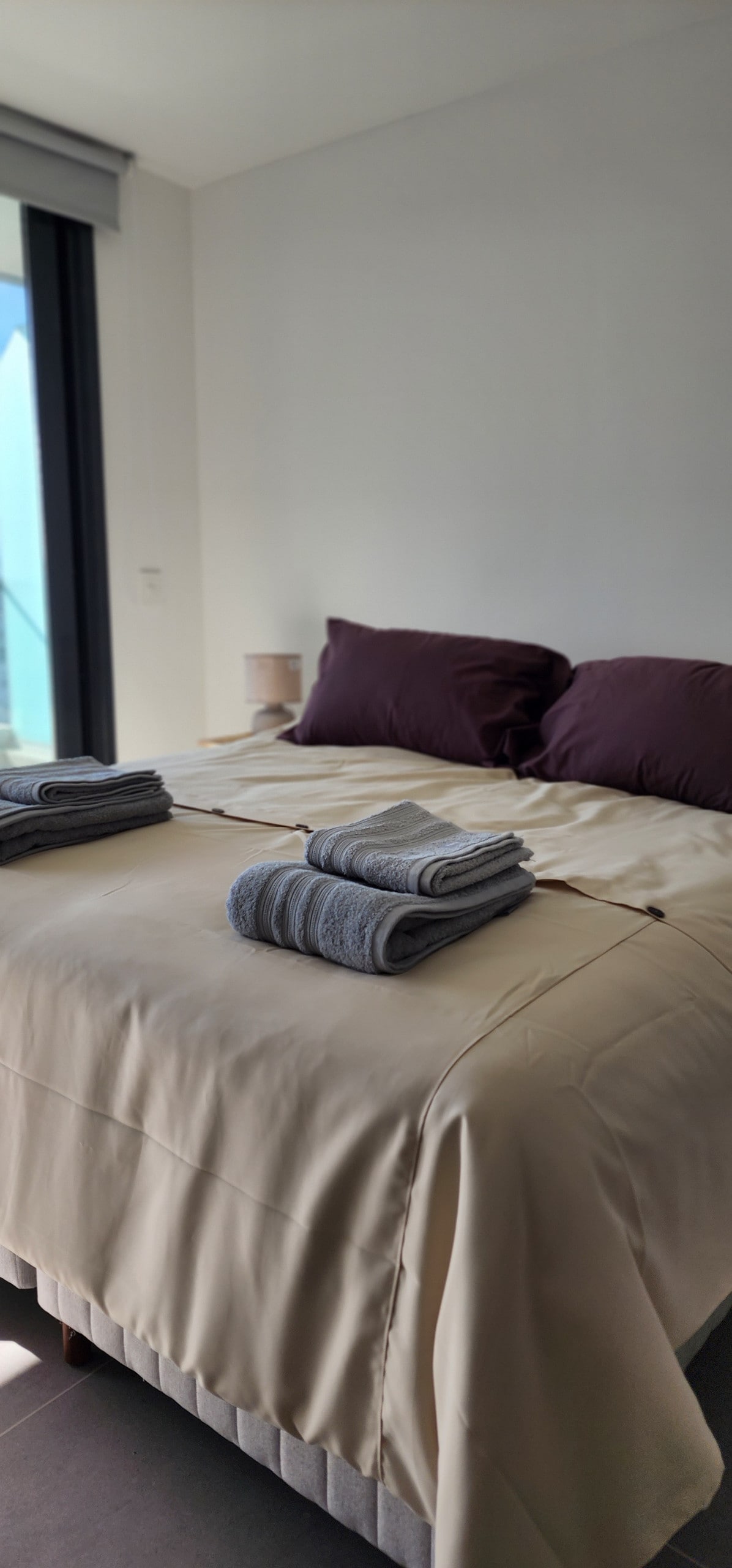 Punta del Este , apartamento a estrenar,muchísima luz natural en todos los ambientes. Edificio muy bien ubicado, con excelentes servicios; piscina climatizada, piscina abierta, gimnasio, barbacoa, cancha de futbol de césped sintético, microcine, sala de niños, adolescentes y adultos, garage cerrado propio, recepción 24 horas, lavadero, etc. wifi. plancha,secador de pelo. Totalmente equipado para 4 personas, ropa de cama y toallas, aire ,2 smart tv 40"