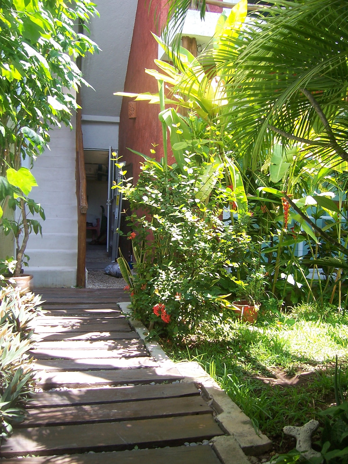 Un studio donnant sur un jardin tropical,bercé par le bruit d'une fontaine.situé au coeur du centre ville d'Isla Mujeres, à 3mn à pieds de la plus belle plage de l'ile, la Playa norte et à proximité de tous les magasins et restaurants.