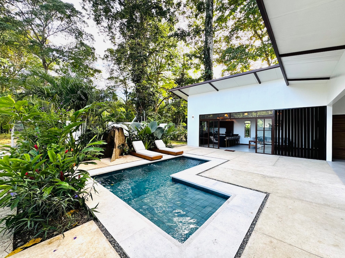 Experimente el lujo y la tranquilidad en Casa Bodhi, un elegante refugio con un diseño abierto que crea una integración perfecta entre el interior y el exterior. ¡A 5 minutos a pie de la playa! Esta residencia cuenta con puertas corredizas triples de vidrio de 2,7 metros de altura que amplían el espacio. Disfrute de comodidades modernas como AC, camas king size, piscina de agua salada y piscinita. ¡Despierte con los sonidos y las vistas de la selva, con monos aulladores, perezosos y otra fauna!