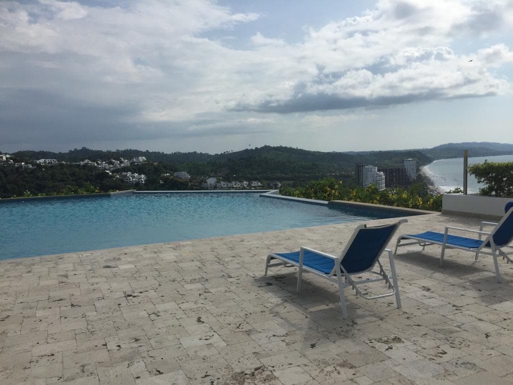 Las fotos hablan por si solas, si buscas algo, aquí lo encuentras todo, vista, tranquilidad, seguridad, consentir a tus seres queridos así como a ti mismo, este es un lugar único en todo sentido, departamento de 2 dormitorios de lujo, 2 baños completos, cocina, comedor , sala y fabulosa terraza con grandiosa vista al mar "en temporada se puede avistar a ballenas". Contamos con instalaciones completas como 2 piscinas para adultos y niños, playa privada, cancha de tenis, básquet, restaurante, etc