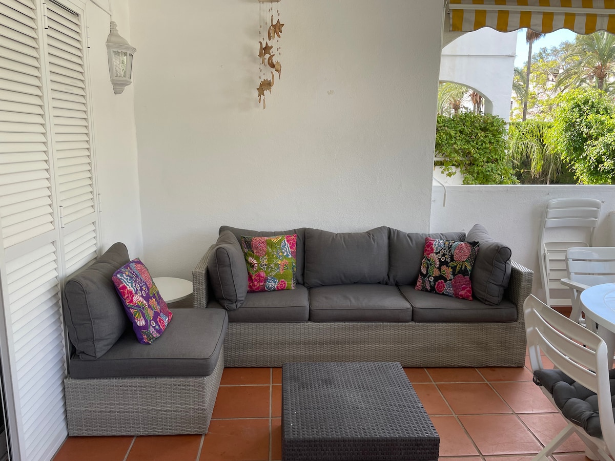 Disfruta de un apartamento cómodo cerca de lo que necesitas. Está a un paso de la mejor playa de Marbella en la zona de Elviria, Golden Beach. Con una amplia terraza que da al jardin y a la piscina con acceso directo a ambos. Dispone de un precioso dormitorio exterior con salida a la terraza y con baño en suite, así como otro amplio dormitorio y un precioso salón con terraza con salida directa al jardín. Sentiras que te encuentras en casa.