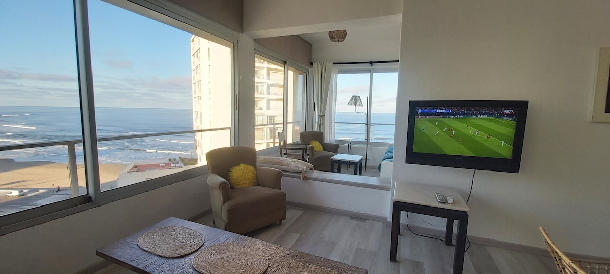 Apartamento de un dormitorio a metros de Playa Mansa y frente al Hotel Enjoy. Muy luminoso, con linda vista a la Playa mansa y todas las comodidades. Wifi , TV Cable, Servicio de mucama diario. Garage propio y lavadero. Muy lindo decorado y completamente equipado. TVs y aire acondicionado en los 2 ambientes. El edificio tiene seguridad 24 hs y cuenta con amenities de calidad: piscina exterior climatizada, gimnasio, sauna, barbacoa con amplia terraza con vistas a la Bahia. Próximo a Gorlero