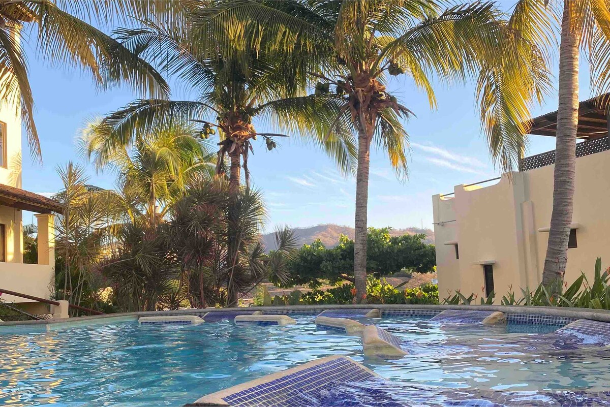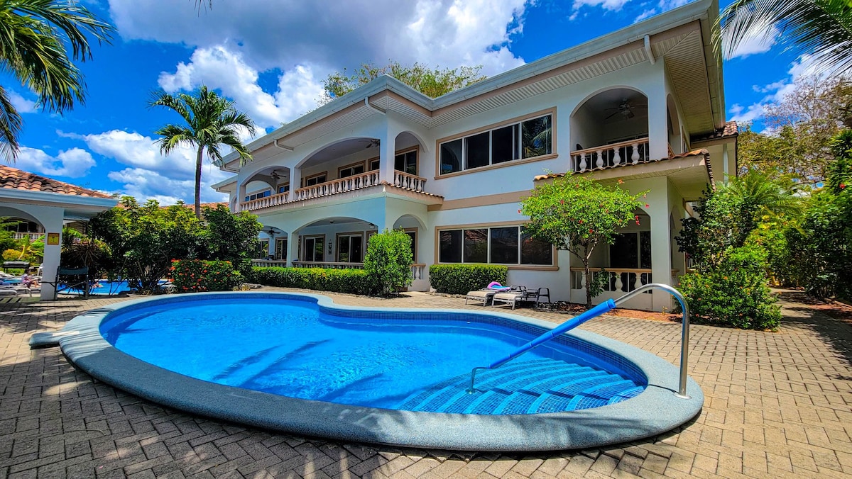 Relax with the whole family at this peaceful place to stay. 8 minutes walk to a long sandy beach with 4 restaurants in the sand. Wake up to the howler monkeys and the birds, and enjoy your morning coffee on the balcony just steps from the pool. Our gated complex has security on site (including cameras aimed only at exterior common areas) , and free parking. We are only 25 minutes from Liberia Airport on paved roads.