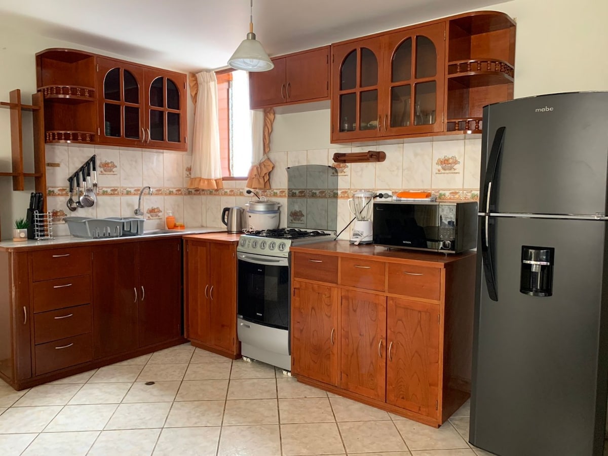 Loft grande con balcon externo cocina incorporada y muy bien equipada con electrodomésticos nuevos como: refrigeradora, cocina de 6 hornillas, hervidor de metal, micro hondas, y útiles de cocina. Baño individual con agua caliente, secador de pelo, toallas, jabon etc Cama de dos plazas y cama de plaza y media. TV de 55", cable con canales en HD, Netflix, Wifi, amplia comoda, plancha y mantas extra. Todo esto ubicado en el centro histórico, 5 minutos caminando a la plaza de armas de Cajamarca.