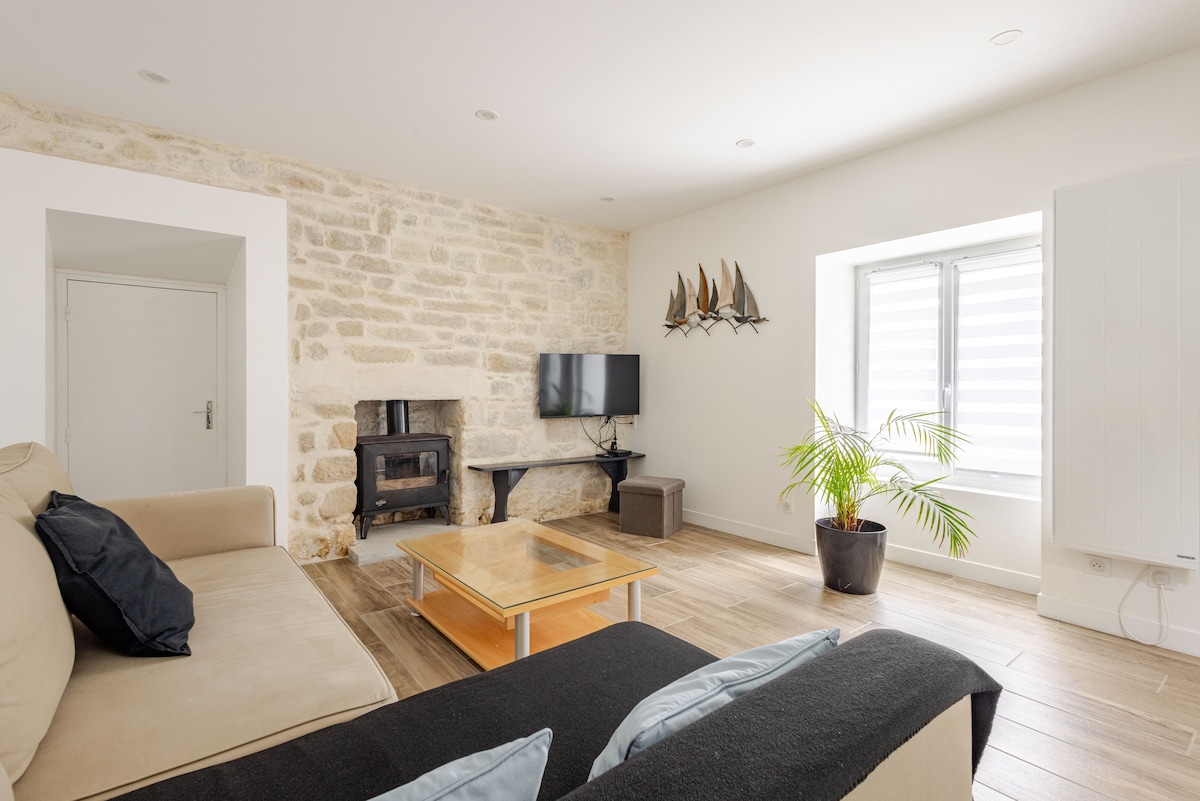 El alojamiento se encuentra en el segundo y último piso de un pequeño complejo de cuatro apartamentos SIN ASCENSOR. Se compone de una sala de estar que se abre a un balcón con vistas a la bahía, y un gran dormitorio con una cama de 140 x 190 cm. Wifi y TV conectada. Capacidad máxima para 2 personas. En el corazón del pueblo, se puede hacer todo a pie. Estacionamiento en pequeño patio privado. Llegada autónoma con caja de llaves. Libro con mis direcciones y lugares favoritos.